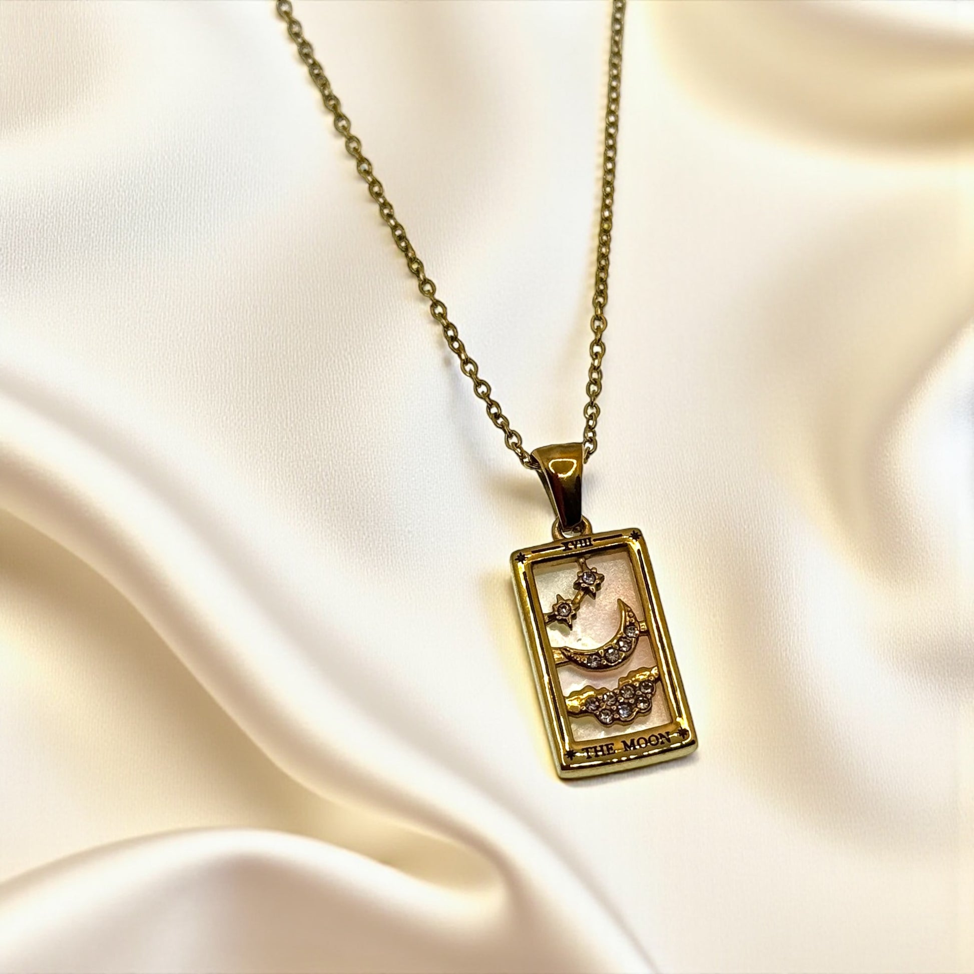 „The Moon“ steht für Intuition, Träume und das geheimnisvolle Licht deiner inneren Welt. Diese Halskette erinnert dich daran, deiner Seele zuzuhören – sie spricht leise, aber wahr. Der Mond steht für Zyklen, Emotionen und die Kraft des Unbewussten, die dich führt, selbst wenn der Weg im Nebel liegt.