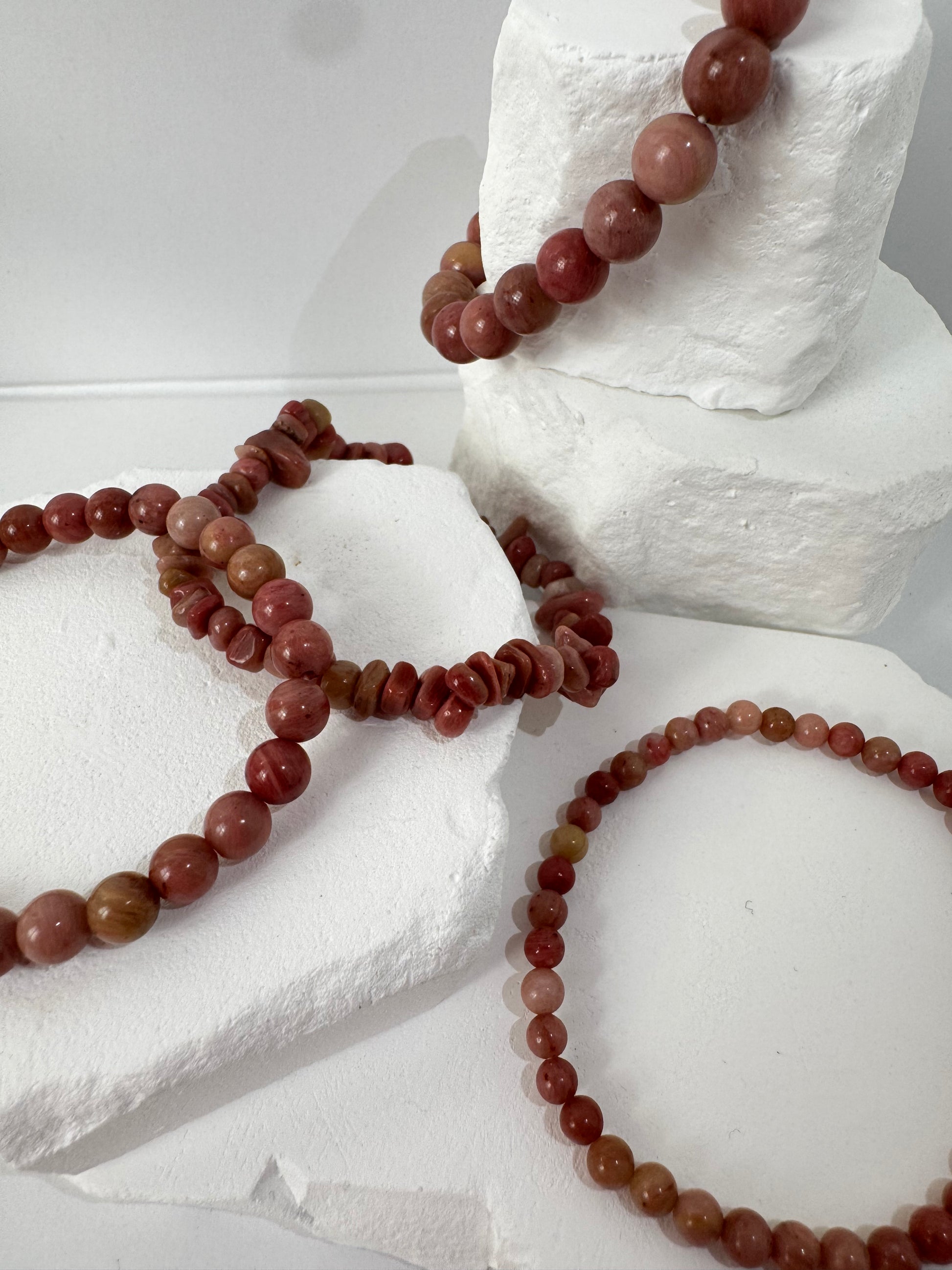 Pinker Rhodonite trägt all die heilenden Qualitäten des klassischen Rhodonit – doch mit einer leichteren, verspielteren Note.